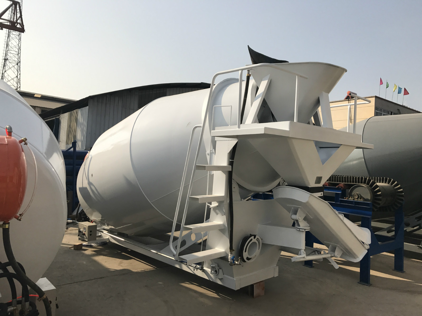 混凝土搅拌运输车由汽车底盘和混凝土搅拌运输专用装置组成。
